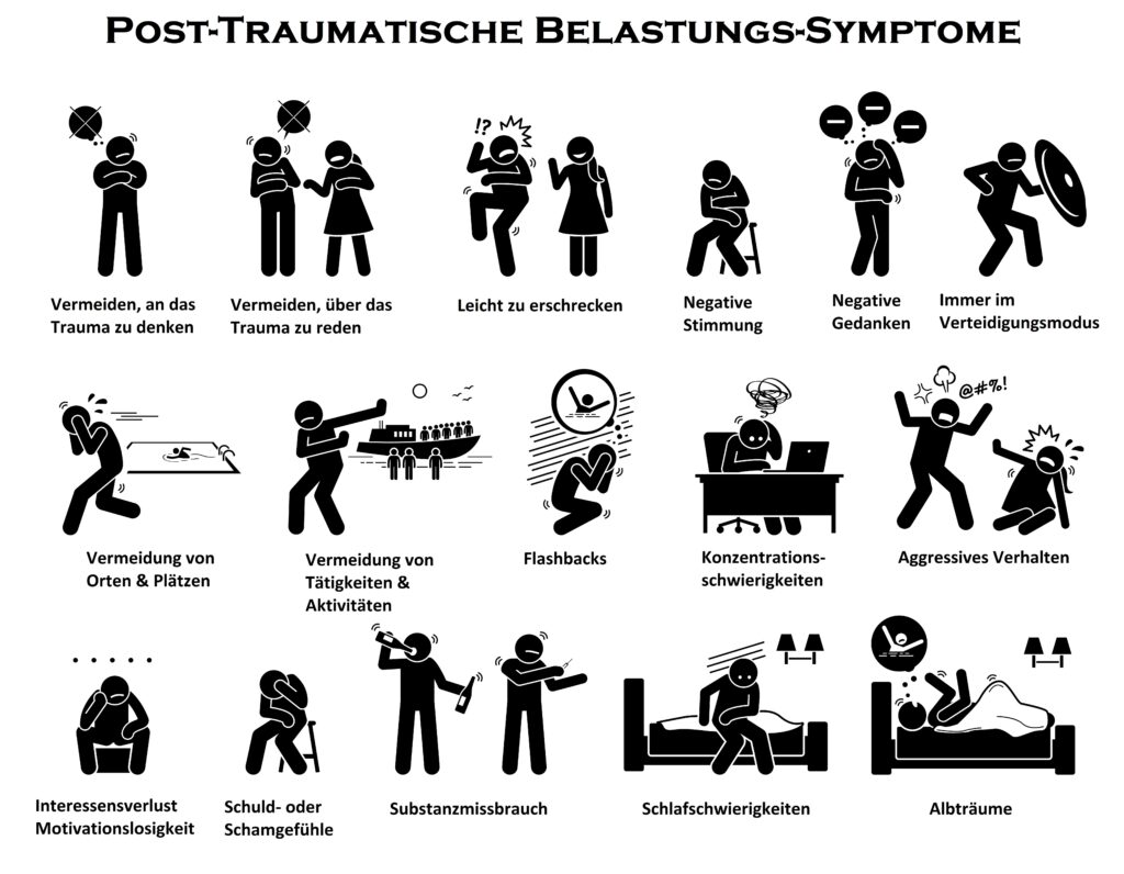 Bei einer PTBS unterscheidet man 3 Symptombereiche: