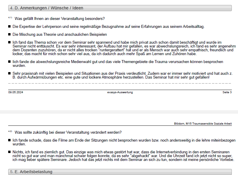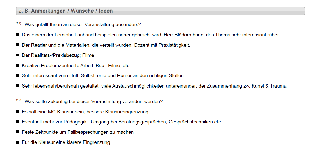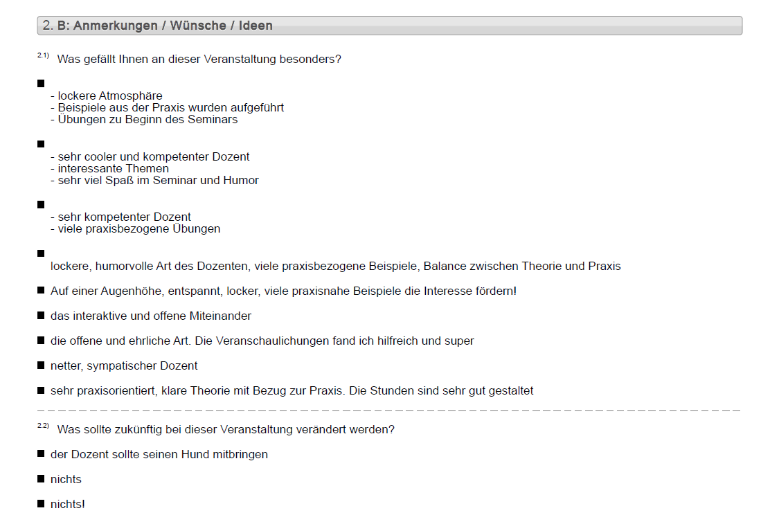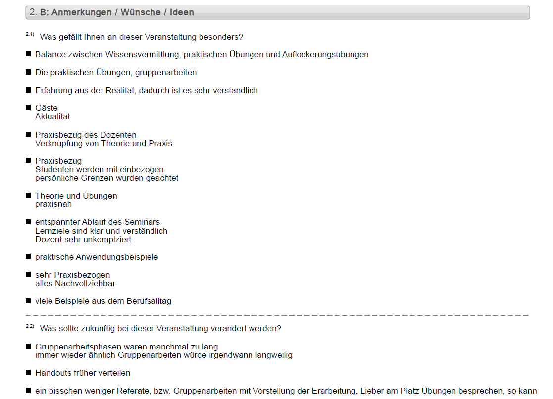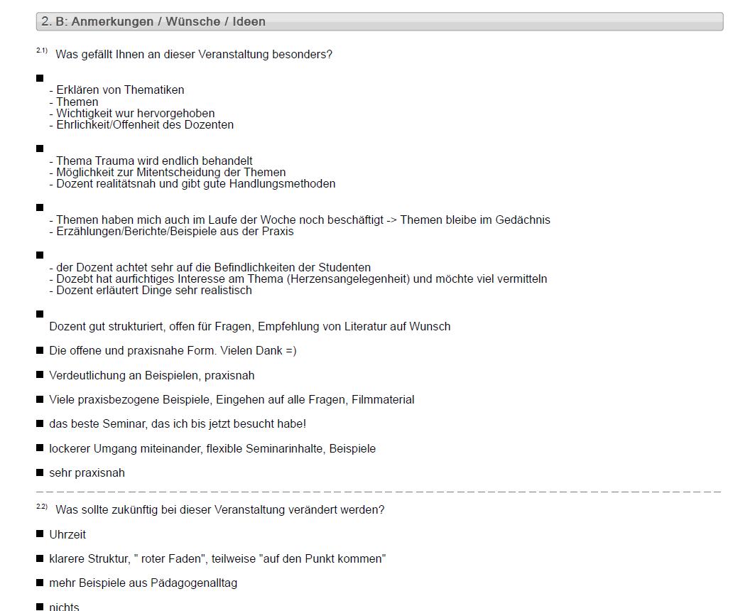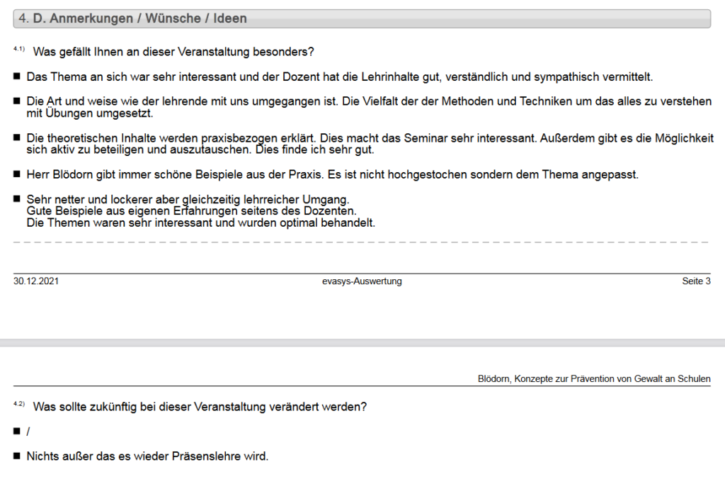 Eine Vielzahl an Seminaren & Fortbildungen wurden anonym evaluiert